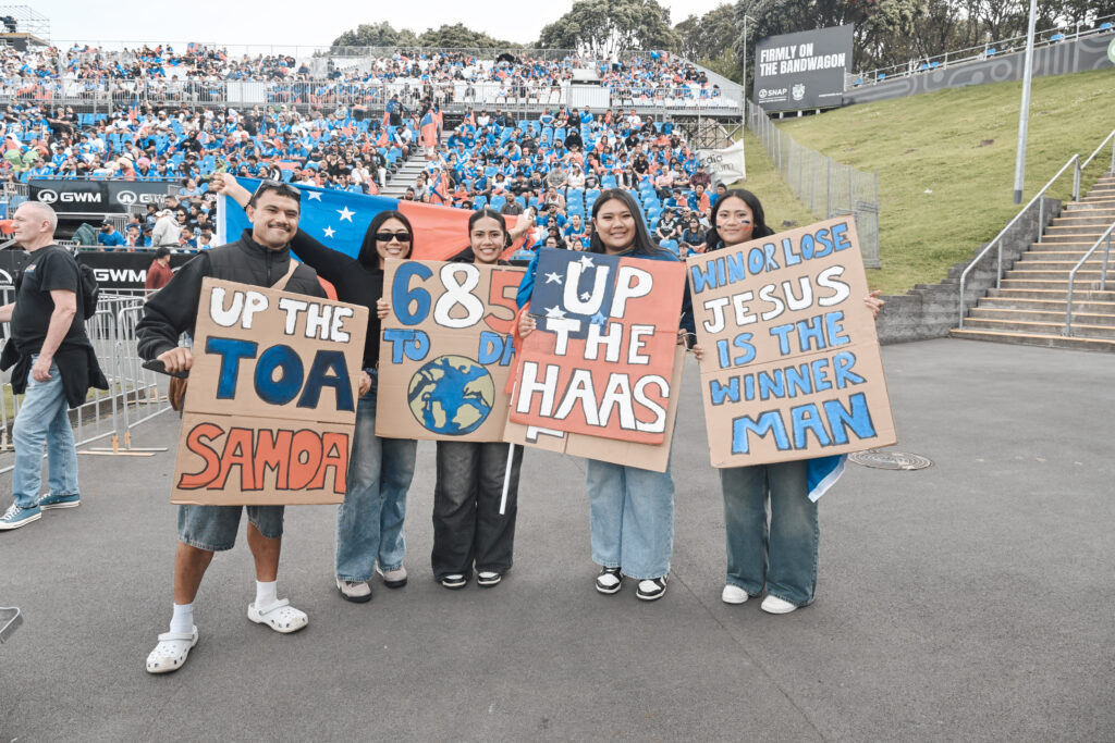 Auckland’s Go Media Stadium was alive with electric energy as over 21,000 fans packed into the stands for the opening clash of the Pacific Championships 2025 between Toa Samoa and the New Zealand Kiwis. And if there was any doubt about where the majority of the support lay, the sea of blue, waving flags, and spirited signs made it clear, the Samoan fans were out in full force.